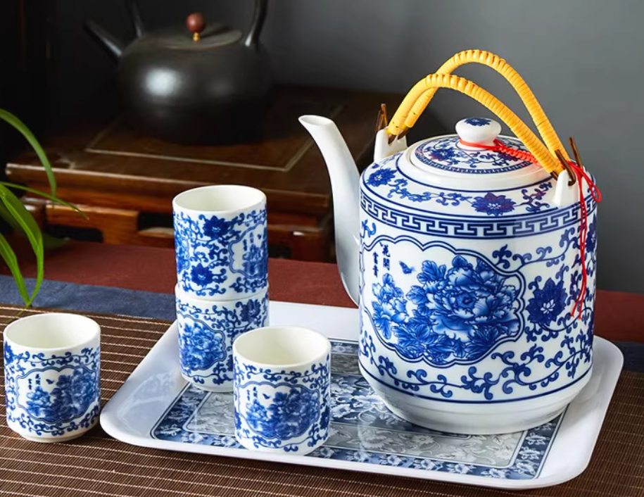 特价景德镇陶瓷家用青花整套功夫茶具套装凉水提梁泡茶壶茶杯茶盘