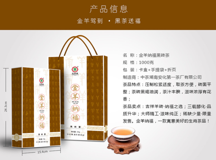 2015年中粮中茶 百年木仓 HT3063金羊纳福 黑砖茶 1000克/盒