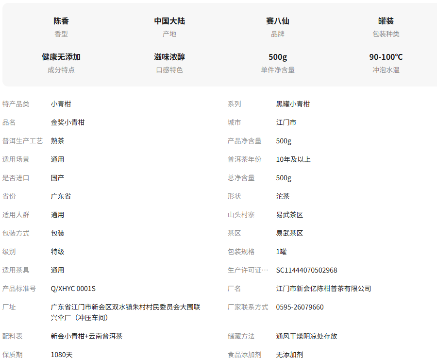正宗新会小青柑普洱茶特级十年陈熟茶生晒陈皮柑普茶金奖茶叶500g