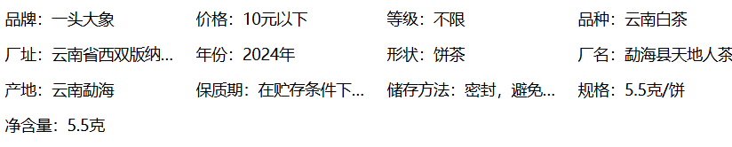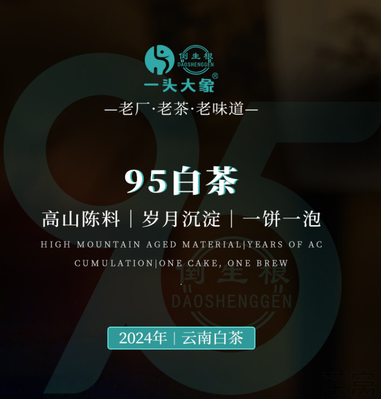 2024年一头大象 95白茶 云南白茶 5.5克/饼 1饼