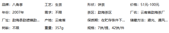 2007年八角亭 0432 生茶 357克/饼 单片